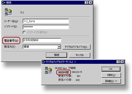2000年以前、インターネットを使うためには、まず「電話を掛ける」事が必要でした。常にインターネットを利用できる「常時接続」は大学や企業の研究所だけ。家庭では、3分10円の電話代を気にしながらの「ダイヤルアップ接続」が主流でした。事前にメールを書き溜めておき、電話を掛けるとまとめてメールの送受信を実行、その間にせかせかとホームページを見て回り、用事が済むとすぐにネットから切断するような使い方です。深夜23時以降に電話料金が定額になる割引サービスの利用者も多かったのですが、その影響で夜はネットが大混雑。電話を掛けてもプロバイダのアクセスポイントの回線が全部埋まっていてネットが利用できません。「話し中」の通知音を聞きながら、リダイヤルを繰り返すのが日課でした。一方、携帯電話も普及しておらず、家庭の電話は家族共用。ネットの最中にお母さんがうっかり受話器を上げてしまい、通信エラーで強制切断、なんて事もよくありました。