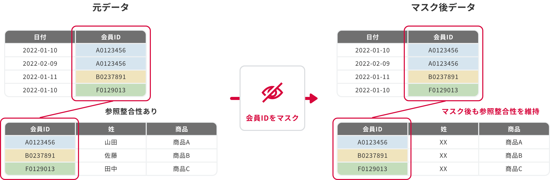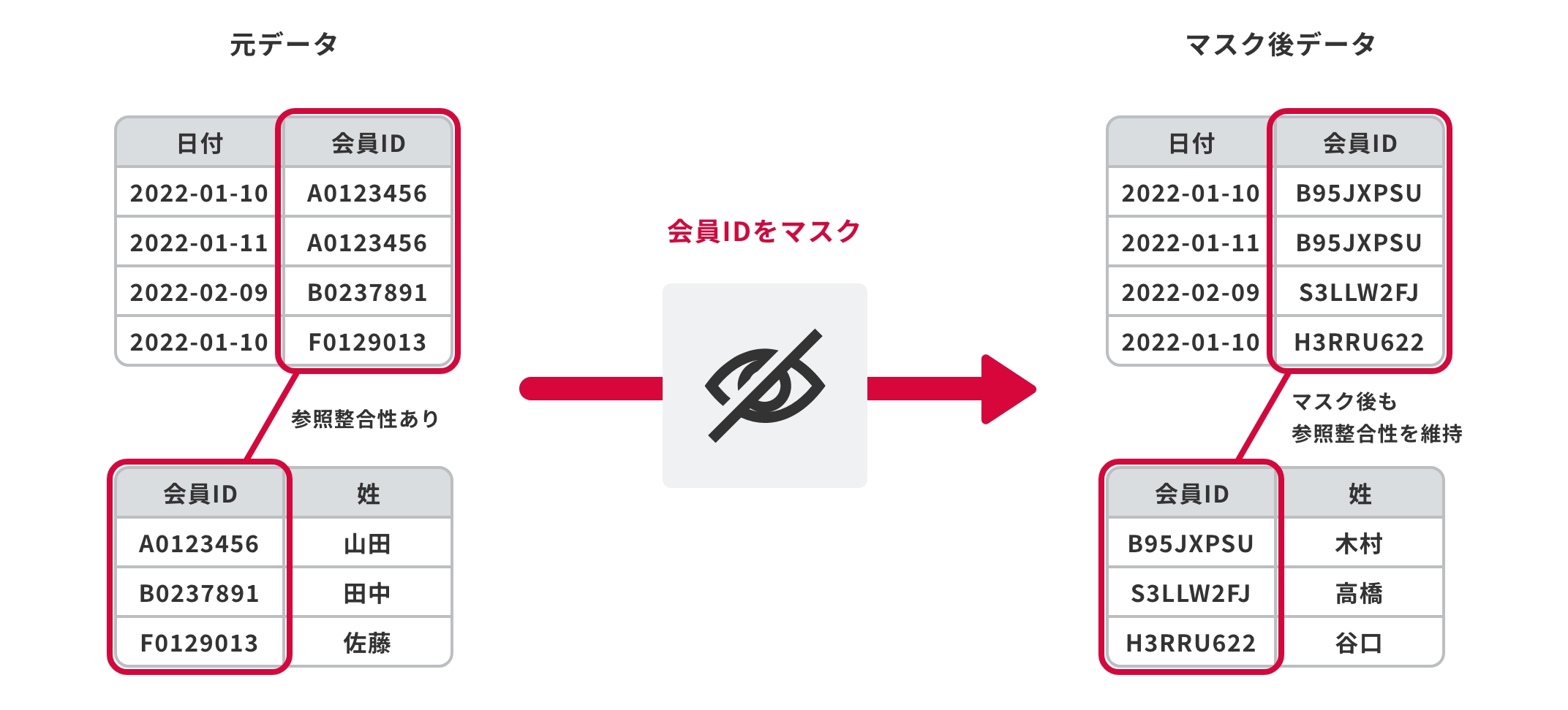 マスキング機能で機微データを保護