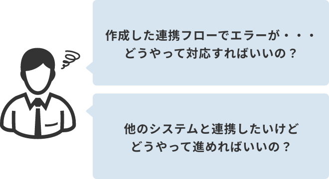 トレーニング期間からフロー開発時のアフターフォローまで、担当のエンジニアがお客様からの質問に直接回答。分からない点を都度確認しながら習得できます。