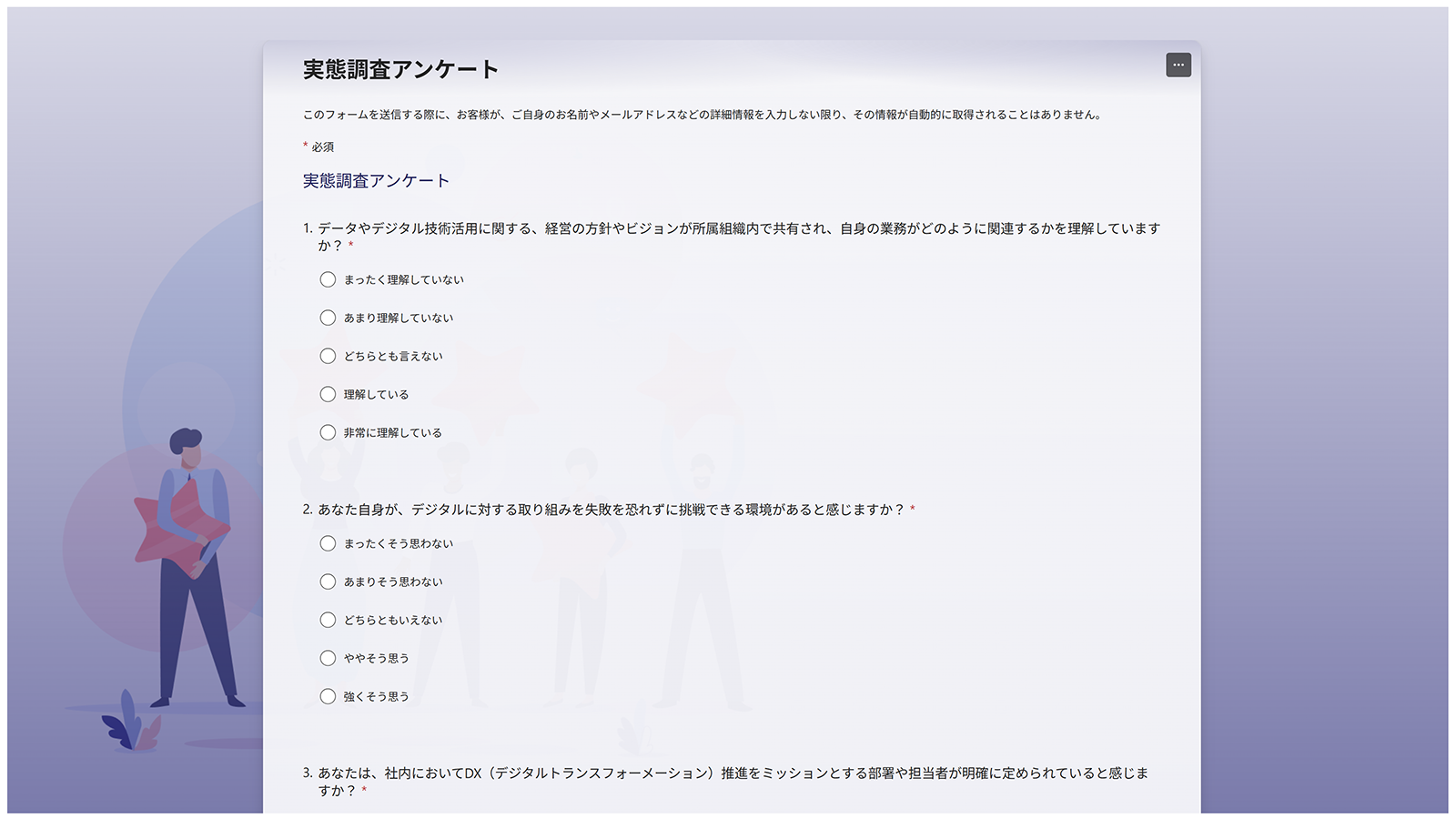 簡単な設問で、組織のデジタル文化の成熟度と課題を定量的に把握したい。