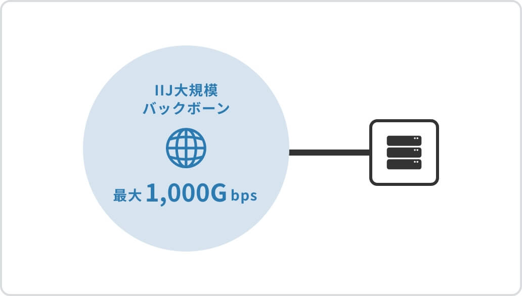 お客様のラックから構内回線に接続するだけで、IIJの高速・大容量バックボーンへ直結。安定したネットワーク基盤をご利用いただけます。BCP・DR対策を目的とした冗長構成にも対応しています。