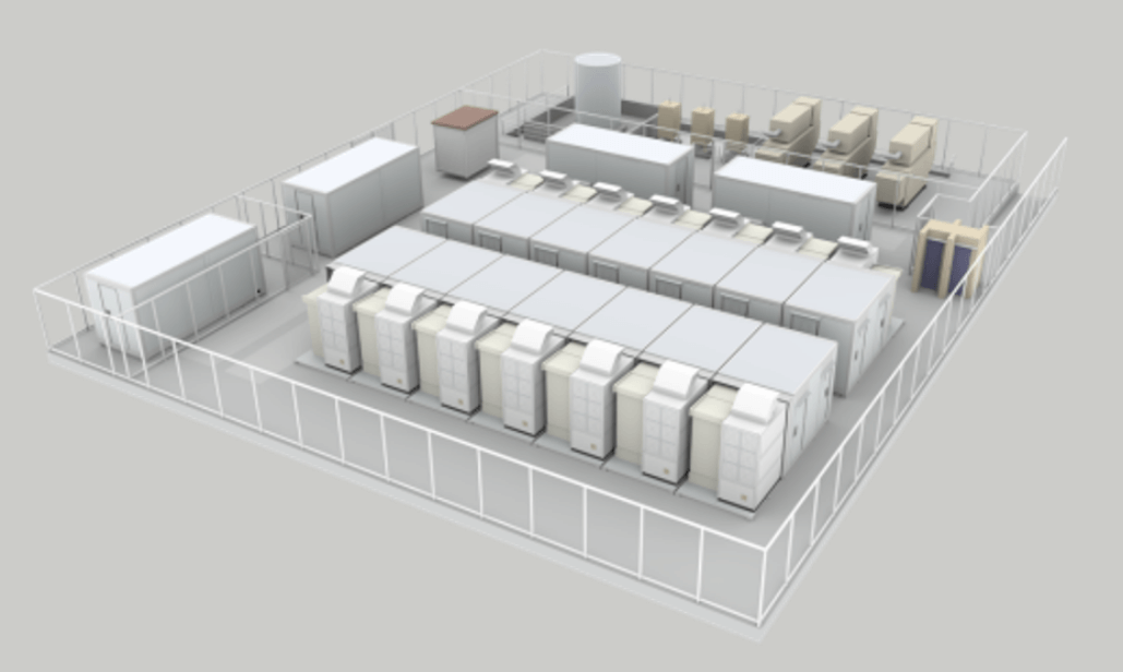 クラウドサービスプロバイダー複数コンテナを現地で連結するオープンフロアスペース設計を採用しました。コンテナ内のスペースを広くとることで、クラウド基盤用の特殊なITラックを設置しました。