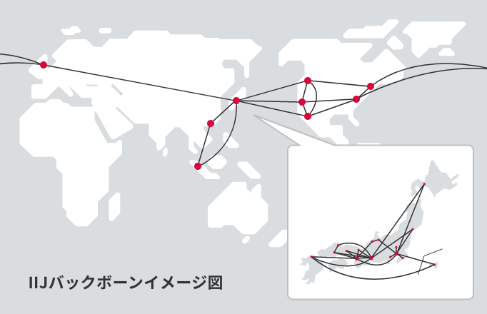 NTTとIIJの相互接続回線は、充分な余裕をもって帯域を確保しています。IIJのバックボーンについては、バックボーンネットワークのページをご覧ください。