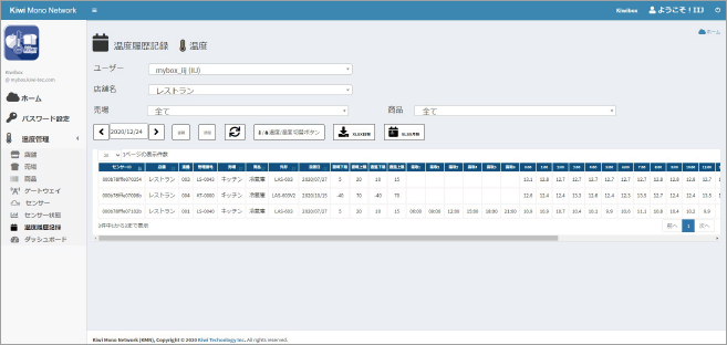 | レポート機能 | 蓄積された温度データを日/月単位でエクスポートすることが可能です |