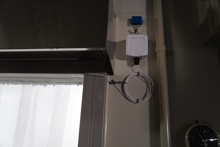 プレハブ型冷凍庫に設置された温度センサー
