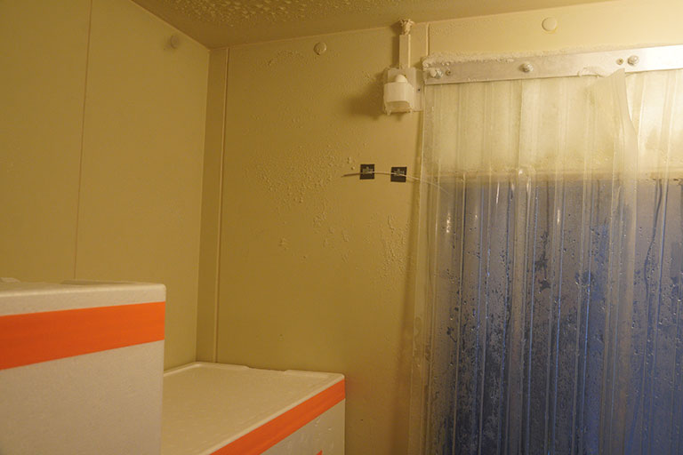 プレハブ型冷凍庫の内部とプローブセンサー部