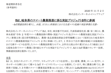 IIJ、岐阜県の実証プロジェクトでIoT関連技術を導入し、水稲、ほうれん草栽培で生産コスト低減の実証事業を支援