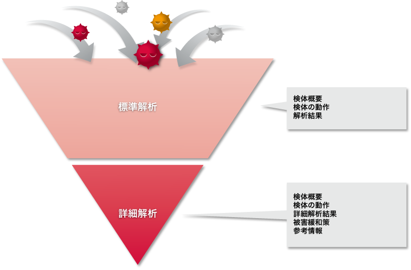特長1 検知した未知の検体を、マルウェア解析専門のアナリストが調査