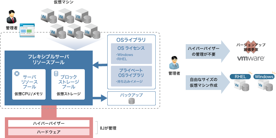 - フレキシブルサーバリソースに展開する仮想マシンにインストールして利用できるOSを提供します。