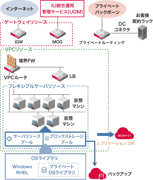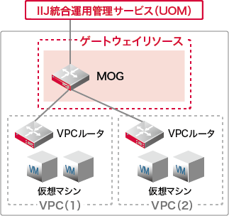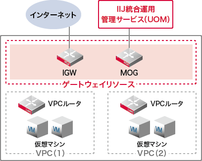 ゲートウェイリソースを利用することで、インターネットとの外部通信、IIJ統合運用管理サービス(UOM)による監視が実現します。