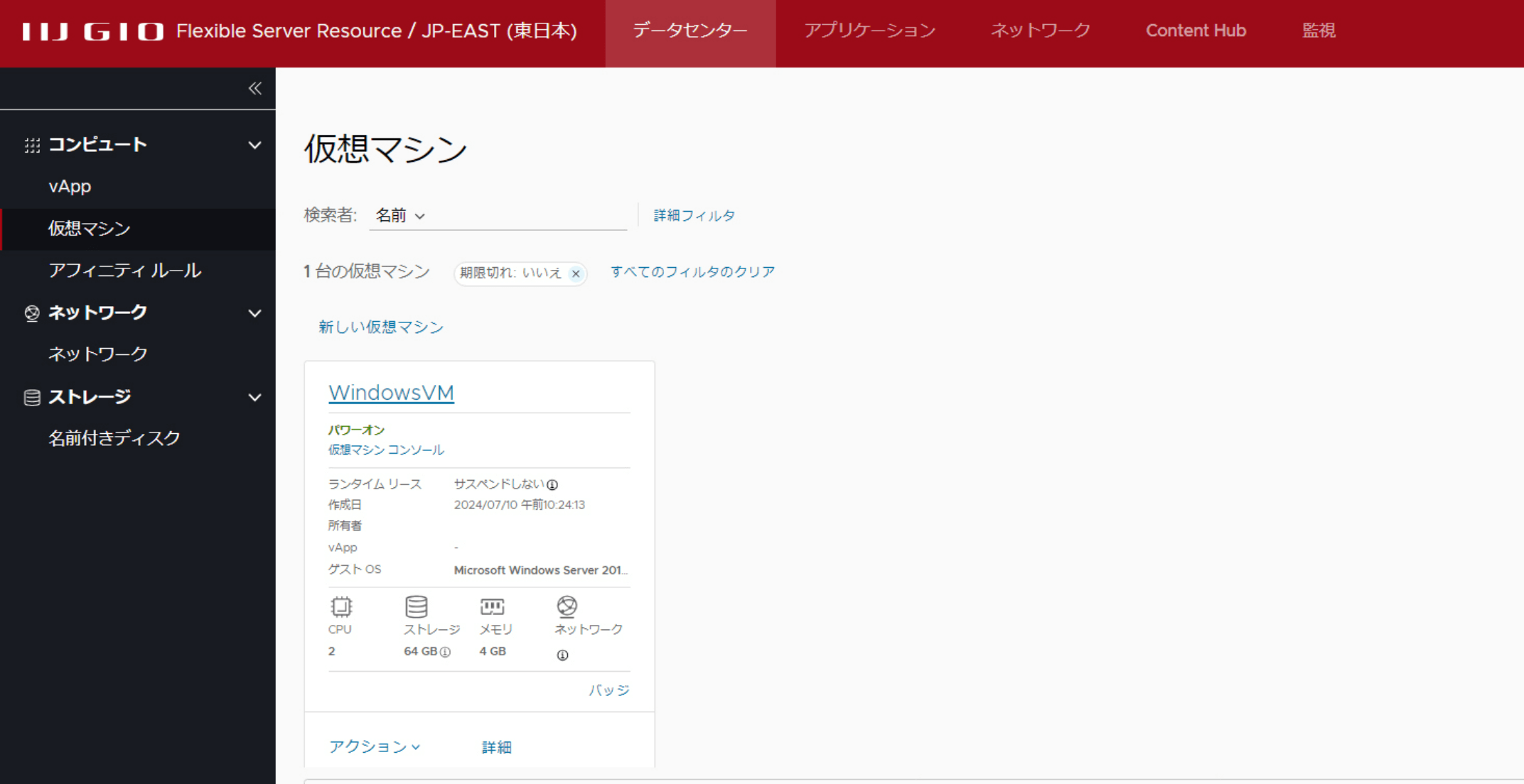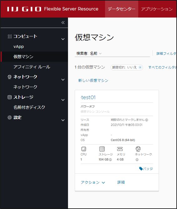 - 仮想マシンの作成や設定変更ができます。仮想マシンのリソース追加もオンラインで行えます。