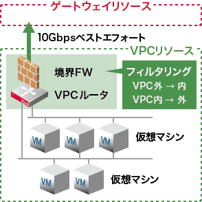 - VPCルータのアップリンクは10Gbpsベストエフォートです。