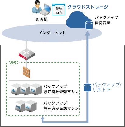 - バックアップの取得、及びバックアップの管理には、サービス専用の通信経路を利用します。そのため、インターネットに接続性のない仮想マシンもバックアップ可能です。