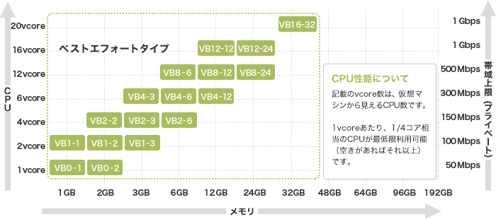 | VB2-6 | 4vcore | 6GB | 150Mbps | 13,125円 | |||||