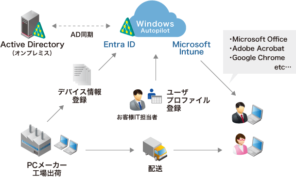 Windows Autopilotを活用したゼロタッチキッティングにも対応し、お客様自身での運用もサポートします。