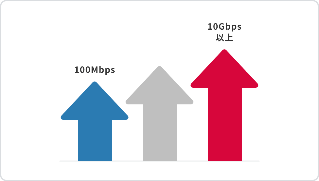 デジタル化が進む現代に求められる大容量のクラウド接続に対応。10Gbps規模の広帯域接続や段階的な拡張も可能です。