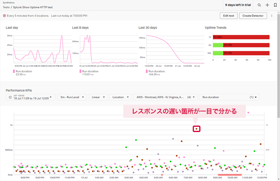 HTTP監視では、死活監視を行い、レスポンスをグラフ化して視覚的に表示します。