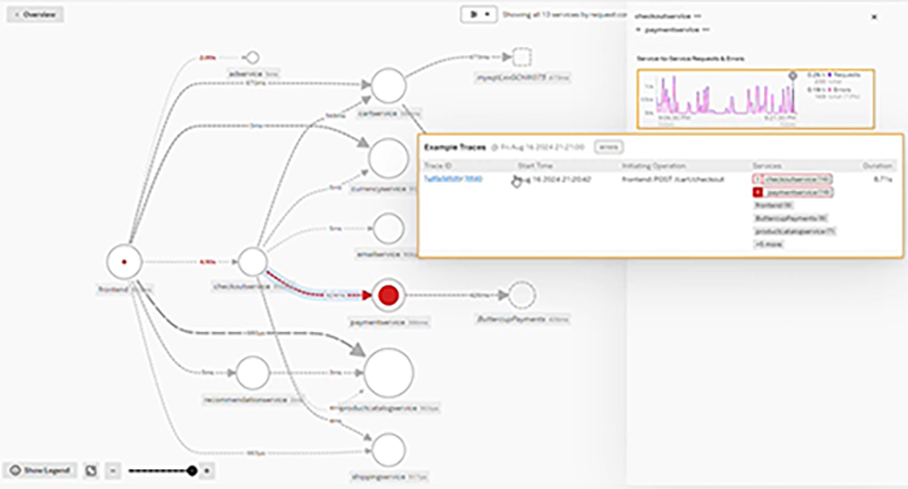 アプリケーションのトレースとインフラメトリックを活用して、システム全体を通して問題発生箇所を正確に特定することが可能です。
