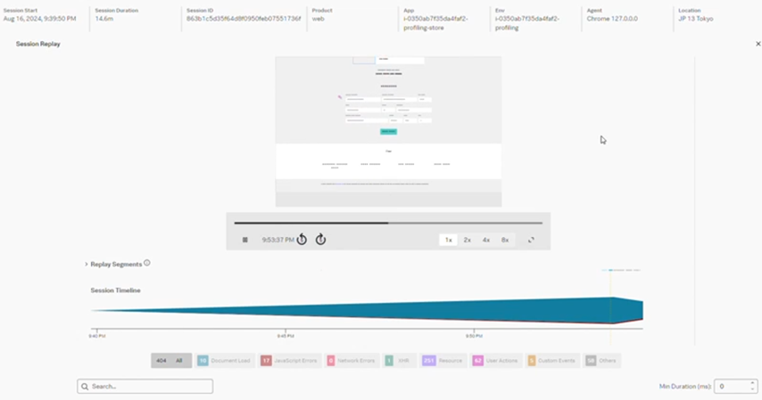 監視対象のアプリケーションログをすべて保管し、リアルタイムで確認できます。アプリケーション監視(APM) 、リアルユーザ監視、ブラウザ外形テストの各画面からログにドリルダウンして、詳細に分析できます。