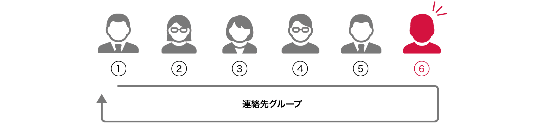 事前に定めたルールに基づいて、アラート発生時に自動電話による通知を行う機能です。通知先をグループ化することで順番に連絡することもでき、受電後は#を押すことで受諾できます。