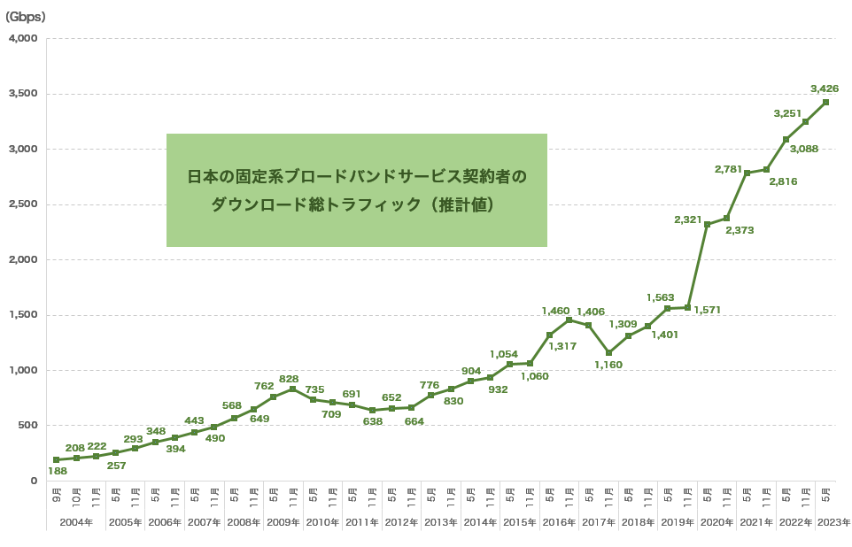 2019年に発生した新型コロナウィルス感染症以降、リモートワークの普及、働き方改革によるインターネットトラフィックの増加は顕著であり、とりわけ動画配信は多くのトラフィックを要します。こうした市場環境に対してIIJはこれまで培ってきたIPネットワーク技術を活用し、様々な視点から放送のためのインフラ構築や配信事業に取り組んでおります。
