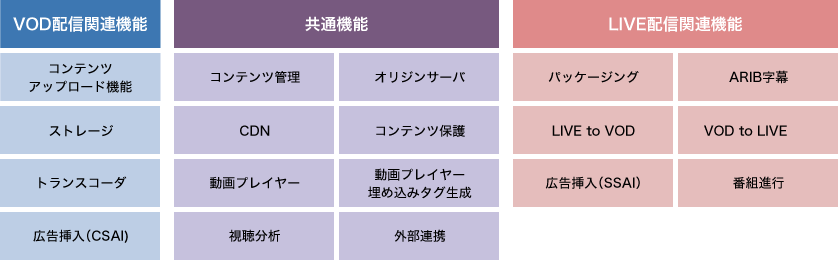 メディアの管理からCM運用まで配信に必要な機能をパッケージし、外部システムとの柔軟な連携も可能です。