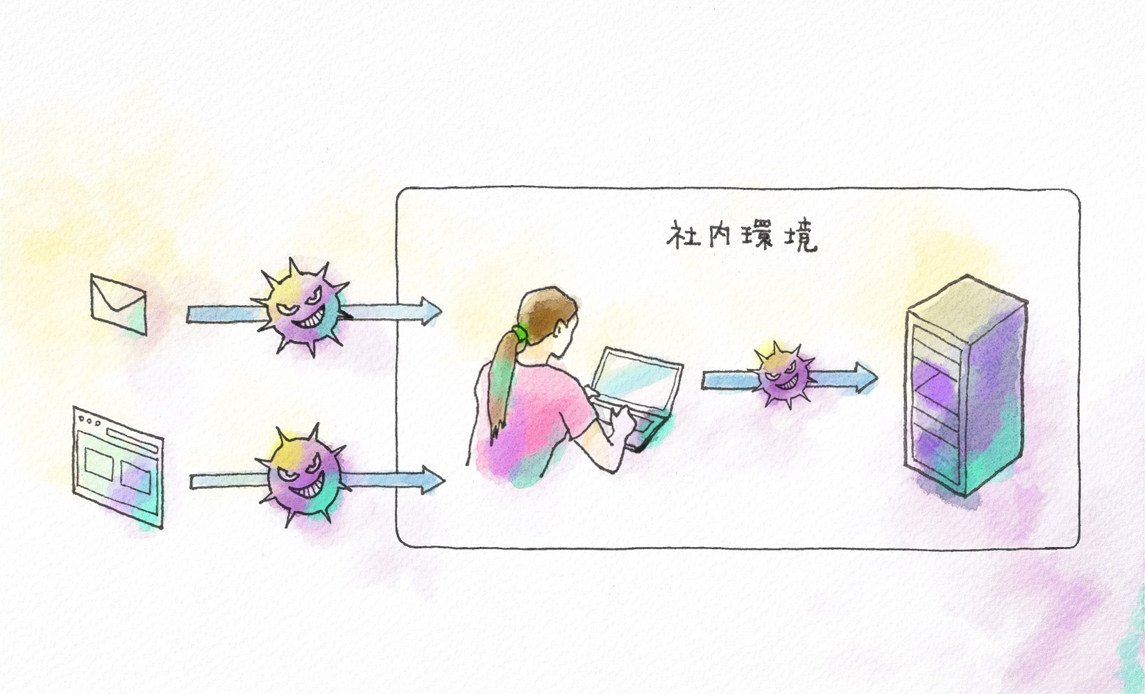 インターネットメールやWEBサイトに、あたかも「無害」であるようなプログラムを仕込んでおき、それがファイアウォールをすり抜け、閲覧者のパソコンに入り込んでから、悪さをするウイルスが出現しました。このように、マルウェアとセキュリティ対策は、常にイタチごっこの関係で進化を続けています。