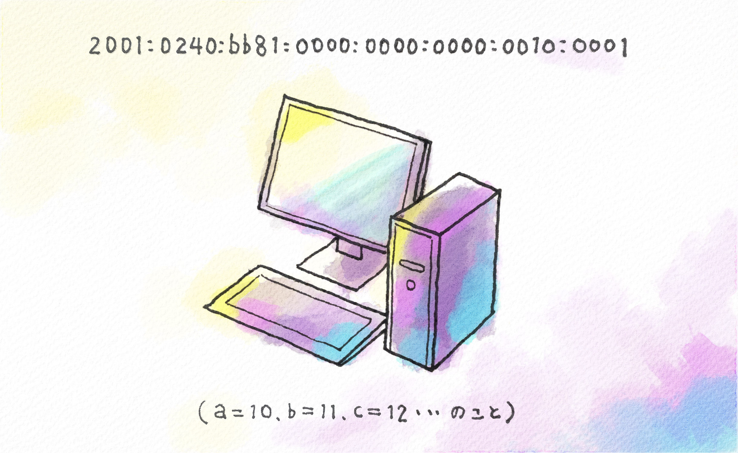 - ※ IPv4は10進数でしたが、IPv6は16進数。
