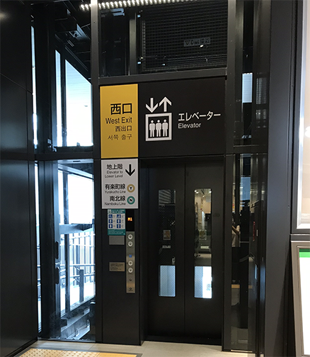 - (1)各ホームに設置されたエレベーターを利用して、改札を出る。