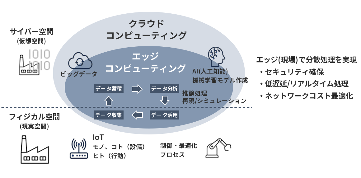 IoT機器などエッジデバイス内での処理能力には限界がありますが、エッジサーバで大規模に処理することにより、生産プロセスのリアルタイム処理を遅延することなく実行することが可能です。