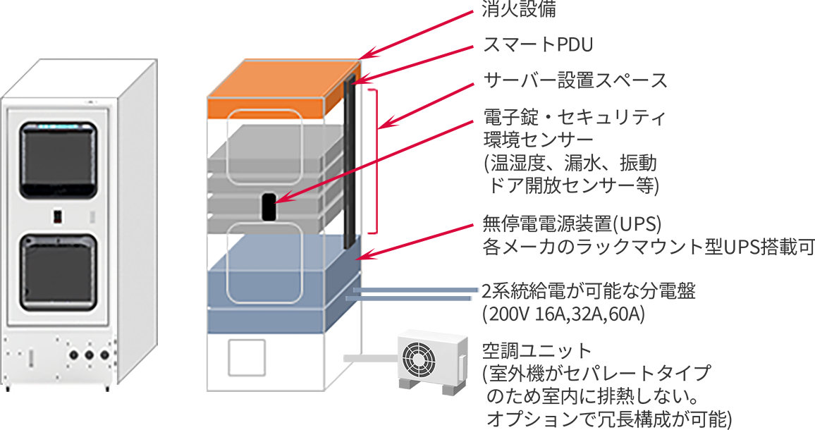 コンテナ型データセンター co-IZmoシリーズよりも小規模な需要や、屋内外に省スペースで設置したいといった需要に応えるため、2021年にマイクロデータセンターを活用したエッジデータセンターソリューションの提供を開始しました。