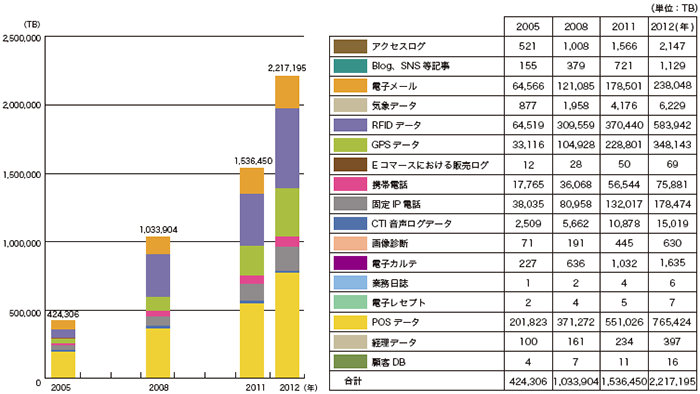 図-4 ビッグデータ蓄積量(産業別、2012年)(※3)