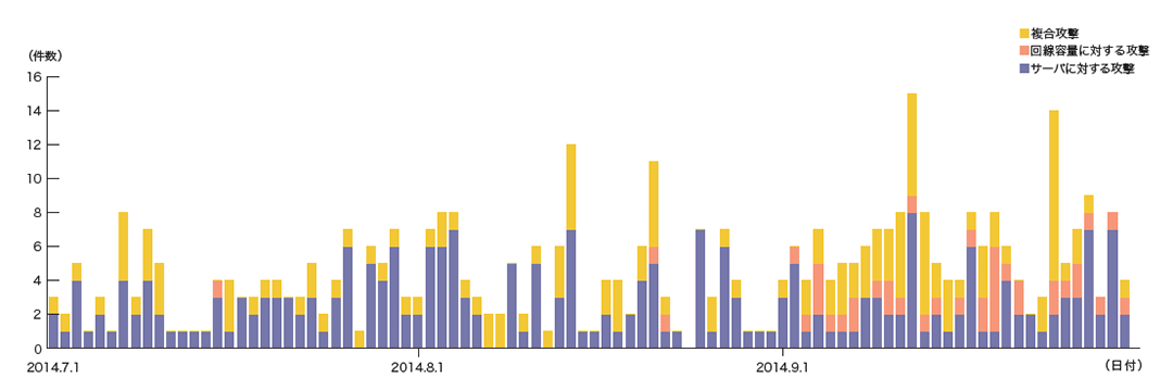 図-2に、2014年7月から9月の期間にIIJ DDoSプロテクションサービスで取り扱ったDDoS攻撃の状況を示します。
