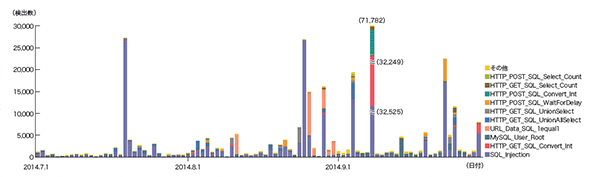 図-11 SQLインジェクション攻撃の推移(日別、攻撃種類別)