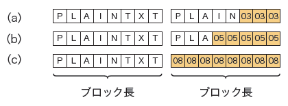 図-16 ブロック長が8バイトの場合のPKCS#5 paddingの例