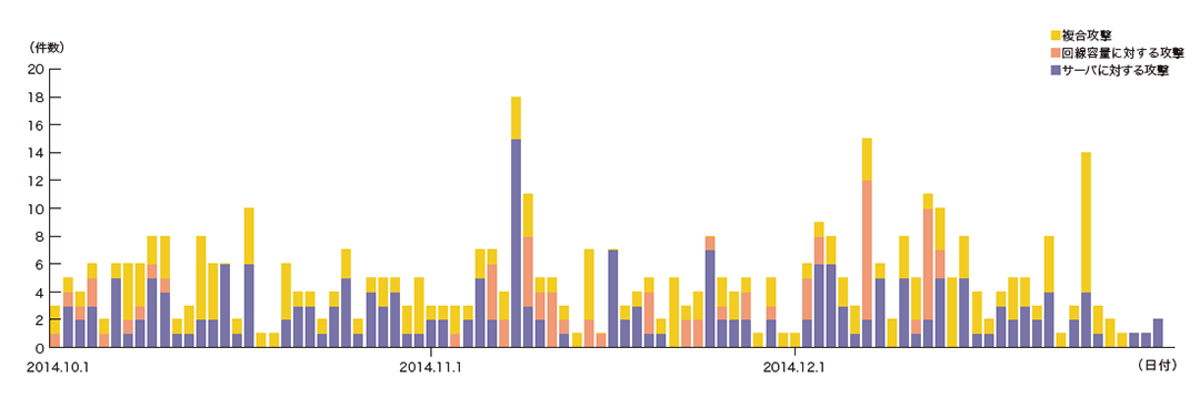 図-2に、2014年10月から12月の期間にIIJ DDoSプロテクションサービスで取り扱ったDDoS攻撃の状況を示します。