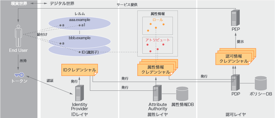図-19 トークンを用いた認証から各種クレデンシャルの流通、アクセス権限付与までの一連の流れ