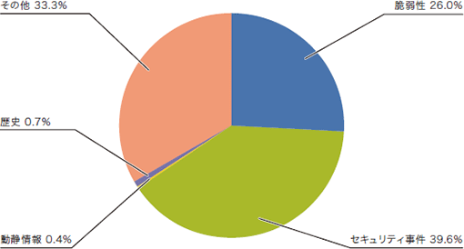ここでは、2015年4月から6月までの期間にIIJが取り扱ったインシデントと、その対応を示します。まず、この期間に取り扱ったインシデントの分布を図-1に示します。(※1)。