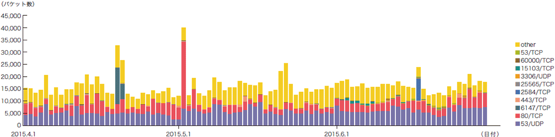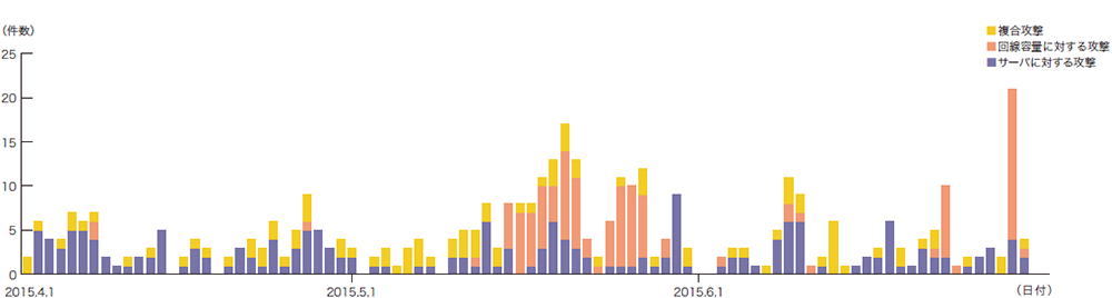 図-2に、2015年4月から6月の期間にIIJ DDoSプロテクションサービスで取り扱ったDDoS攻撃の状況を示します。