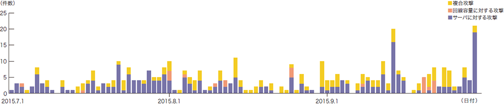 図-2に、2015年7月から9月の期間にIIJ DDoSプロテクションサービスで取り扱ったDDoS攻撃の状況を示します。