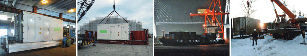 ロシアへの輸送手段は、横浜港からウラジオストクまではコンテナ船を使い、ウラジオストクから最終設置場所であるモスクワから数百km離れた工業都市へはトレーラで輸送しました(図-3)。co-IZmo/Iは積み重ねに耐える強度はあるものの、クレーンで吊って船に下すときの衝撃が大きいため、平置きにて輸送しました。ロシア内での陸送手段としてはシベリヤ鉄道も検討しましたが、最終的にトレーラを採用しました。バイカル湖周辺での悪天候により何週間も足止めされるなど予想もつかないことが起きましたが、冬期はマイナス30°にもなる環境のもと、今日に至るまで安定稼働しています。