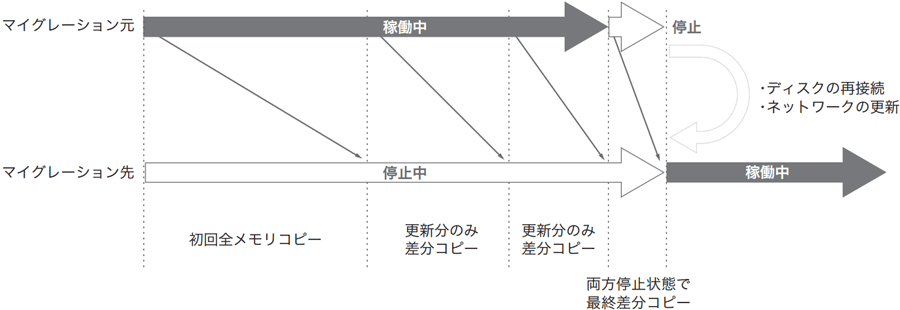 まず、ライブマイグレーションが実行されると、次のような処理が行われます。