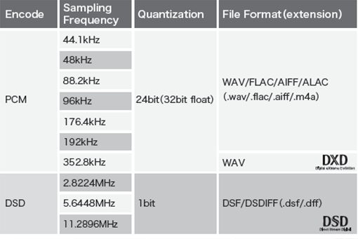 表-1 現在ダウンロード販売されているハイレゾ音源の種類