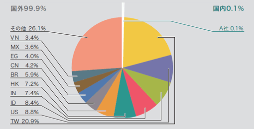 図-8 検体取得元の分布(国別分類、全期間、Confickerを除く)