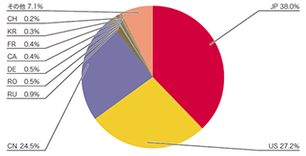 図-3 DDoS攻撃のbackscatter観測による攻撃先の国別分類