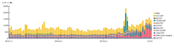 図-2に、2016年1月から3月の期間にIIJ DDoSプロテクションサービスで取り扱ったDDoS攻撃の状況を示します。