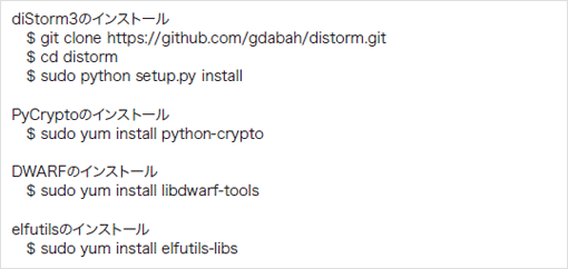Volatilityの実行とプロファイルの生成に必要なライブラリをインストールします(図-16)。一部、gitを使用していますが、Linuxディストリビューションによっては、これらのライブラリのパッケージが用意されている場合もあると思いますので、適宜、インストールを行ってください。