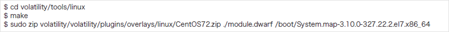 このZIPファイルがVolatilityのプロファイルとなります。プロファイルに命名規則はありませんが、最低限OSバージョンが分かるようなプロファイル名が望ましいでしょう。より細かく管理するのであれば、Linux Kernelバージョンもプロファイル名に含めてください。