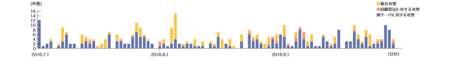 図-2に、2016年7月から9月の期間にIIJ DDoSプロテクションサービスで取り扱ったDDoS攻撃の状況を示します。
