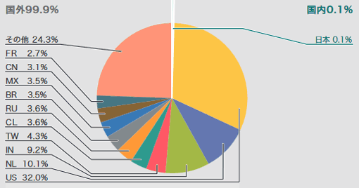 図-8 検体取得元の分布(国別分類、全期間、Confickerを除く)